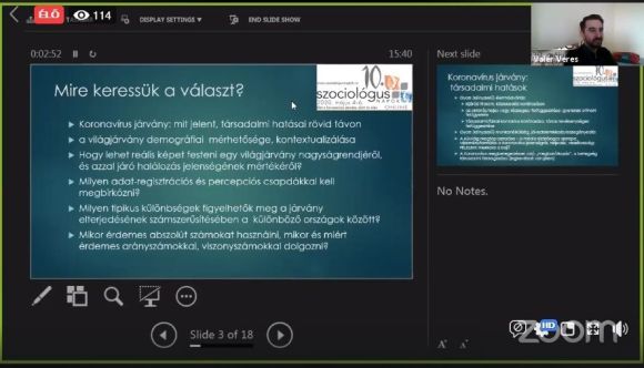 Miként lehet helyesen értelmezni a világjárvány méreteit, következményeit? Hogyan változott meg az életünk a vírus miatt? Ezekre a kérdésekre adott választ Veres Valér szociológus a 10. Szociológus Napok első napján.