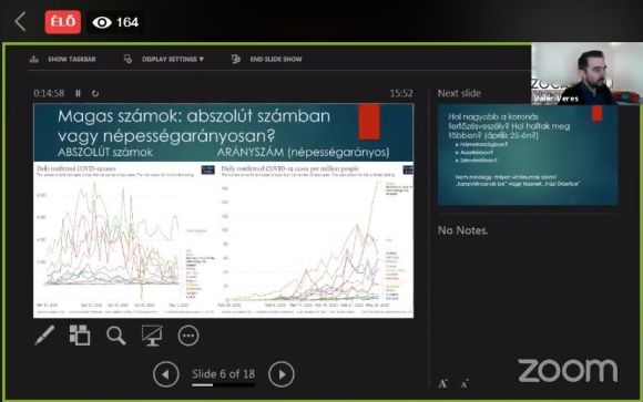 Azonban a probléma szerinte nem is ott kezdődik, amikor vannak számok és azokat másképp érzékeljük, hanem amikor a számok teljesen mást mutatnak, mint ami a valóságban történik. Azaz amikor az országokban működő stratégiai kommunikációs csoportok csak azokat számolják fertőzöttnek, akiket leteszteltek, akik kórházban vannak, esetleg meghaltak és az elhalálozásukat hozzá lehet kapcsolni a koronavírushoz.